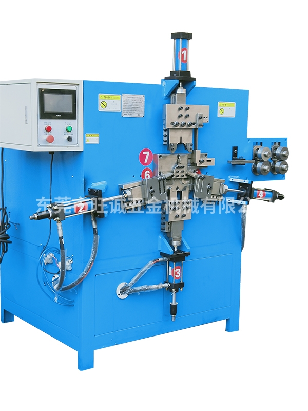 电脑液压机简要说明 1)电源电压:380v/50Hz,2)电机功率:5.5kw,4级,台湾群力产),;3)适用材料;铁材,铜材,碳钢,不锈钢,半圆材料,三角型材料,四方线材等。4)送线范围;0~无限。 5):机械性能:a)该机的机械工作工位全部由编好程序的电脑发出指令工作达到成型各种型号不同规格产品之功能。b);该机有,自动送线,剪切,,压扁,,成型折弯,自动退料之功能。C)该机通过电脑编程和成型模具可生产不同规格的产品。(注,电脑pLc,信捷产,电子阀,台湾群力产)省时,省工,价格低,功能强大是五金产品配件的首选之设备。